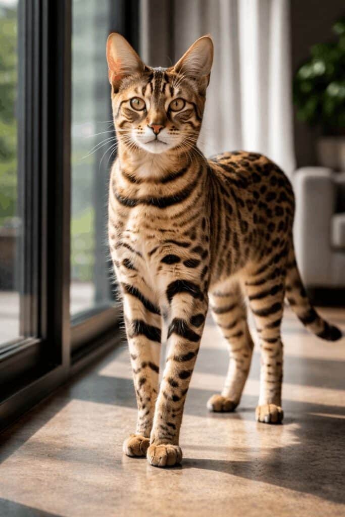Some states in the USA regulate these breeds. Before choosing one, check local laws. These big cat breeds that love water and climbing need space and attention.