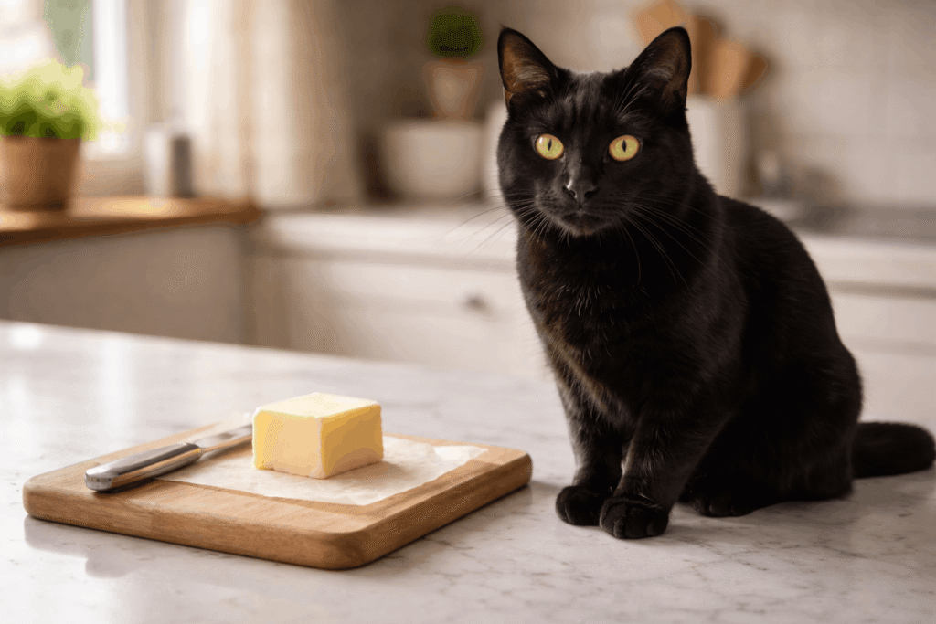 Yes, a tiny lick is usually harmless. Still, can cats eat butter regularly? No. Butter offers fat without useful nutrition. It doesn’t support balanced cat nutrition or meet proper cat nutrition requirements for long-term health.