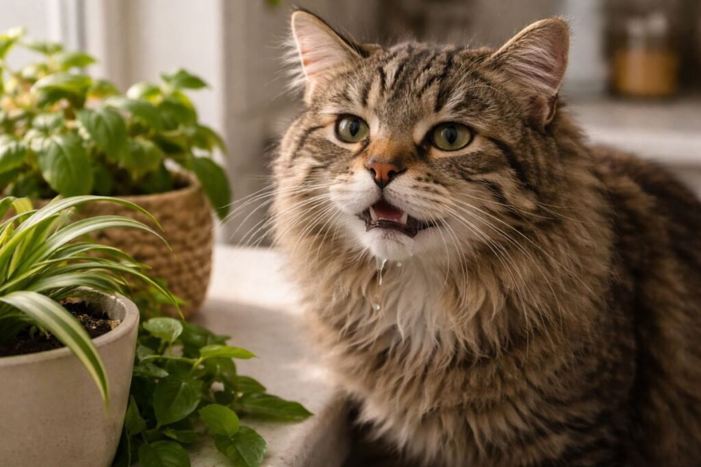 One dangerous cause of sudden cat drooling is toxin poisoning in cats. Common risks include poisonous plants for cats, household cleaners, and accidental chemical exposure in cats. Even flea products made for dogs can be toxic.