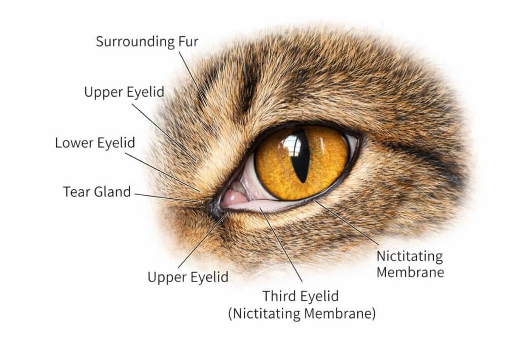 Cats contain a hidden protective layer called the nictitating membrane. Veterinarians often describe this as the third eyelid in cats. It moves across the eye quickly when needed. This feature plays an important role in the cat third eyelid function.