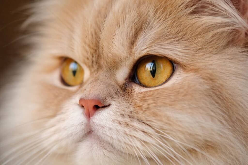 Breeds such as Persians and Maine Coons develop fluffy fur around their eyes. This creates the appearance of long hair cats eyelashes, even though those strands are simply cat eye fur.