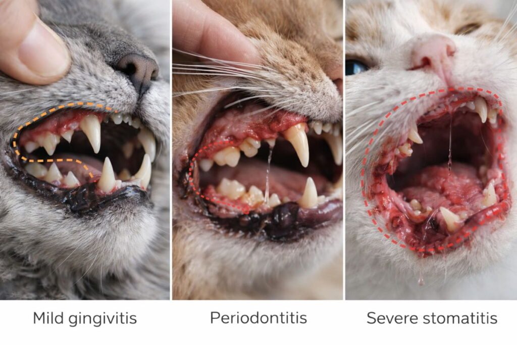 Not all dental problems are the same. Mild gum inflammation in cats begins as gingivitis but can advance to periodontal disease in cats or severe stomatitis in cats, causing deep tissue damage. Early recognition helps prevent permanent harm.