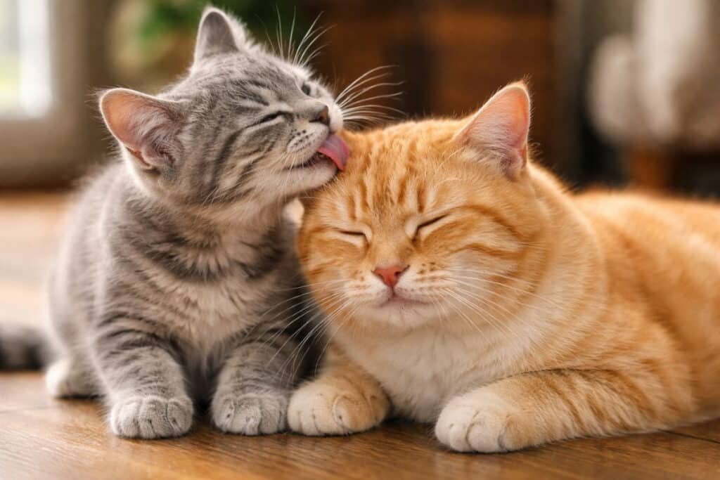 Cats often groom trusted companions to show affection. This gentle ritual strengthens feline social bonding and deepens trust between animals living together. When cats lick faces or ears, they reinforce an emotional connection.