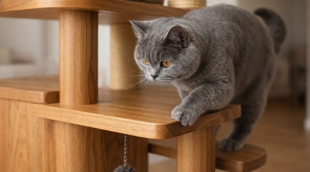 Kittens need lower platforms and gentle climbs. Senior cats prefer wide steps and stable surfaces. A wooden cat climbing tree adapts well to these needs. The structure feels predictable under movement, which reduces stress.